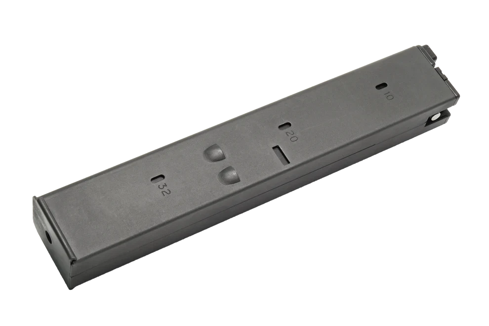 In 1960, the design was changed for safety and to meet Bundewehr regulations, preventing cocking of the breech block when the selector is on safe. In July of the same year, the issues of difficulty cocking the MP2 with gloved hands (due to the small cocking knob), and the bolt accidentally releasing before the gun was fully cocked were solved by increasing the size of cocking knob and designing a new ratchet safety built into the top cover. The original 25-round magazines were fully replaced by 32-round magazines by the late ‘60s.