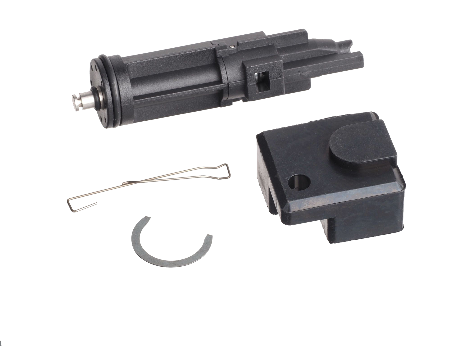 The MP2A1 Upgrade Kit includes a Nozzle with an end spring, a Long Stroke Buffer Pad, a Long Stroke Cocking Knob Pawl Spring, a Barrel Spacer, and a Cutoff Lever(not in the picture). These components enhance gas efficiency and resolve issues preventing the gun from working properly.