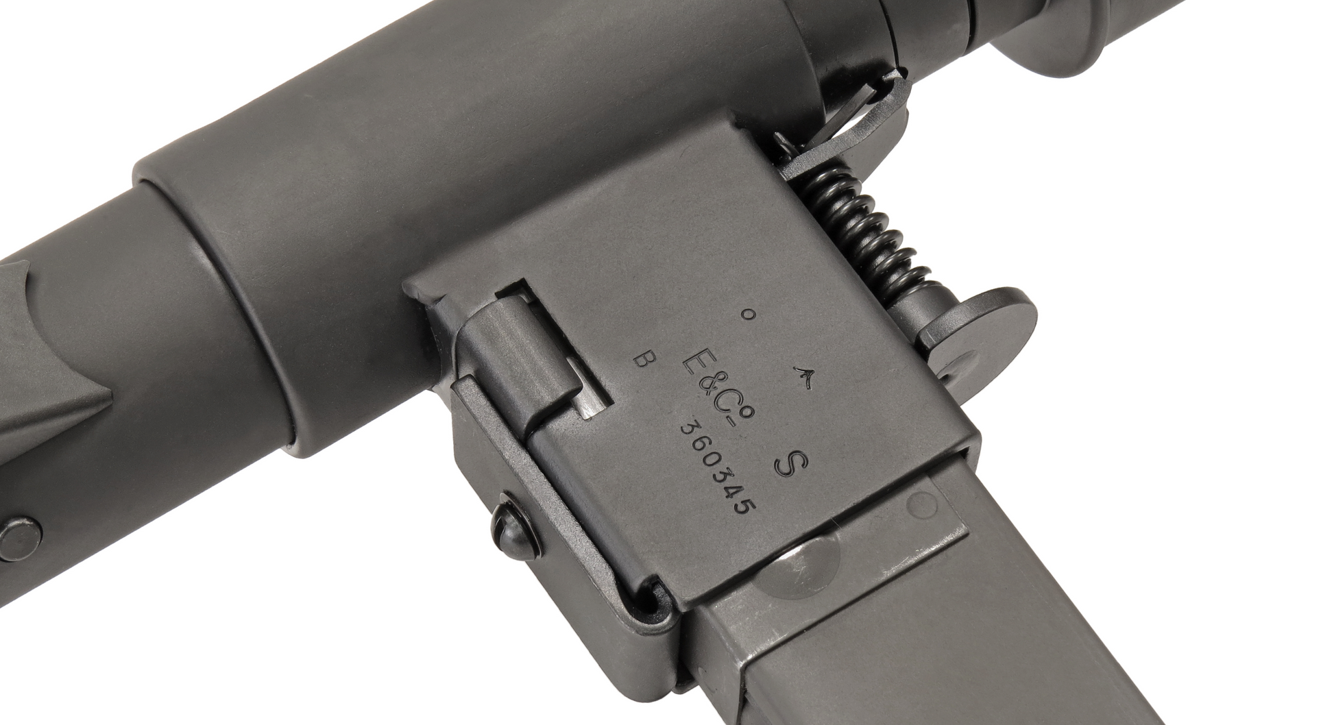 A little history about the importance of this special variation of the Mk.II STEN gun: The Mk.2 (S) Sten was produced in 1944 when the SOE - Special Operations Executive put in a request for a high firepower, silenced sub-machine gun that they required for clandestine missions. The improved sound reduction cylinder is called Welsilencer, the initial "Wel" refers to SOE's workshop in Welwyn (now Welwyn Garden City), which is dedicated to SOE's ninth branch for the production of special weapons and equipment. As a signature of products developed and designed here, the initials "Wel" would be added as a prefix of the name. For example, "Wel "rod (Welrod pistol) for sound reduction pistols and "Wel "bike (Welbike) for paratrooper folding motorcycles.