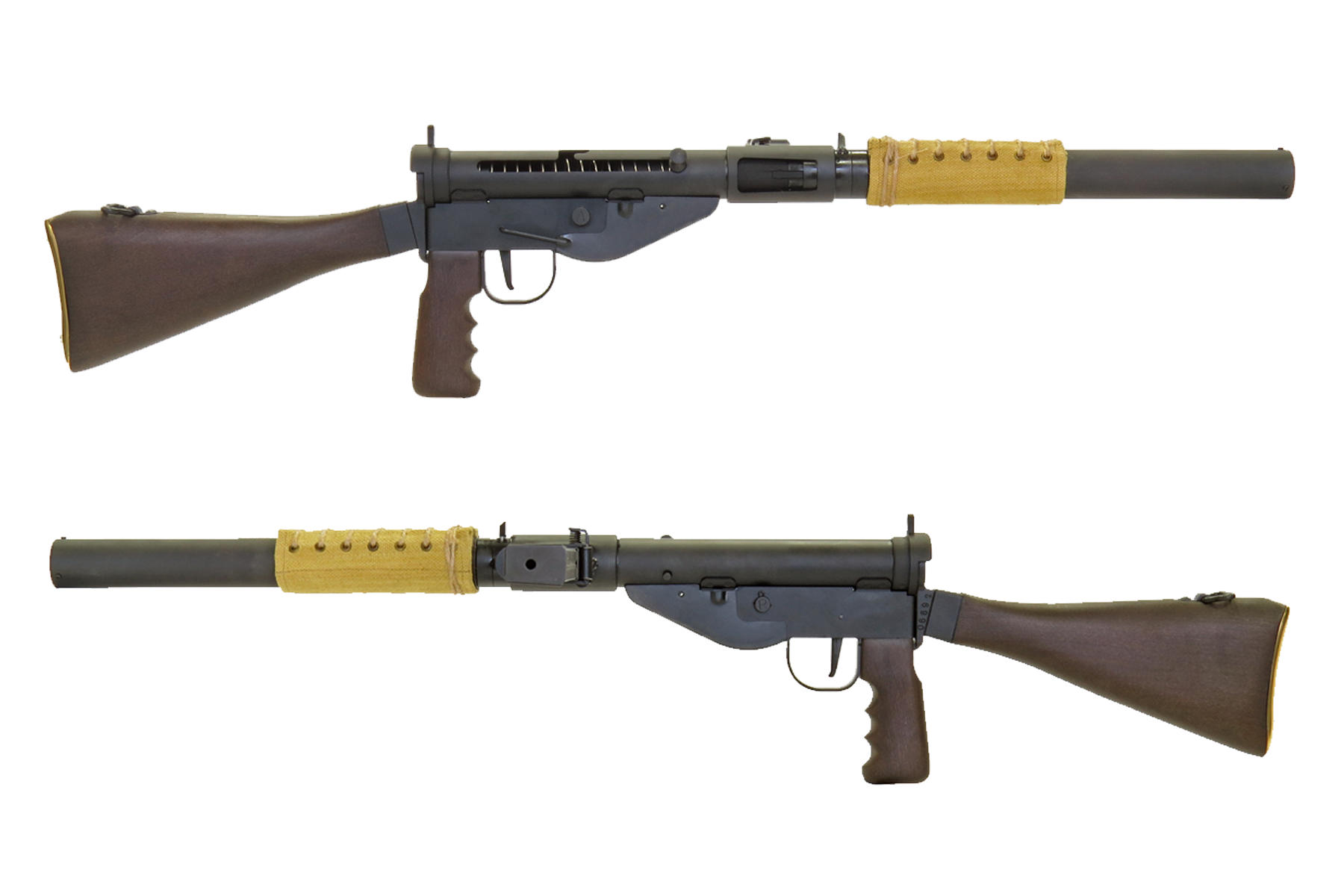 It is designed for use as a silenced special purpose weapon as the Mk. 2(S) but is an adaption of the Mk. 5. The silencer, which is incorporated with the barrel. It functions in principle the same as that on the Mk. 2(S) but differs slightly in constructional details. It’s also covered with canvas heat shield laced onto the jacket as a hand grip over an insulation. It was used by British and Australia Special Forces and Commando Companies.